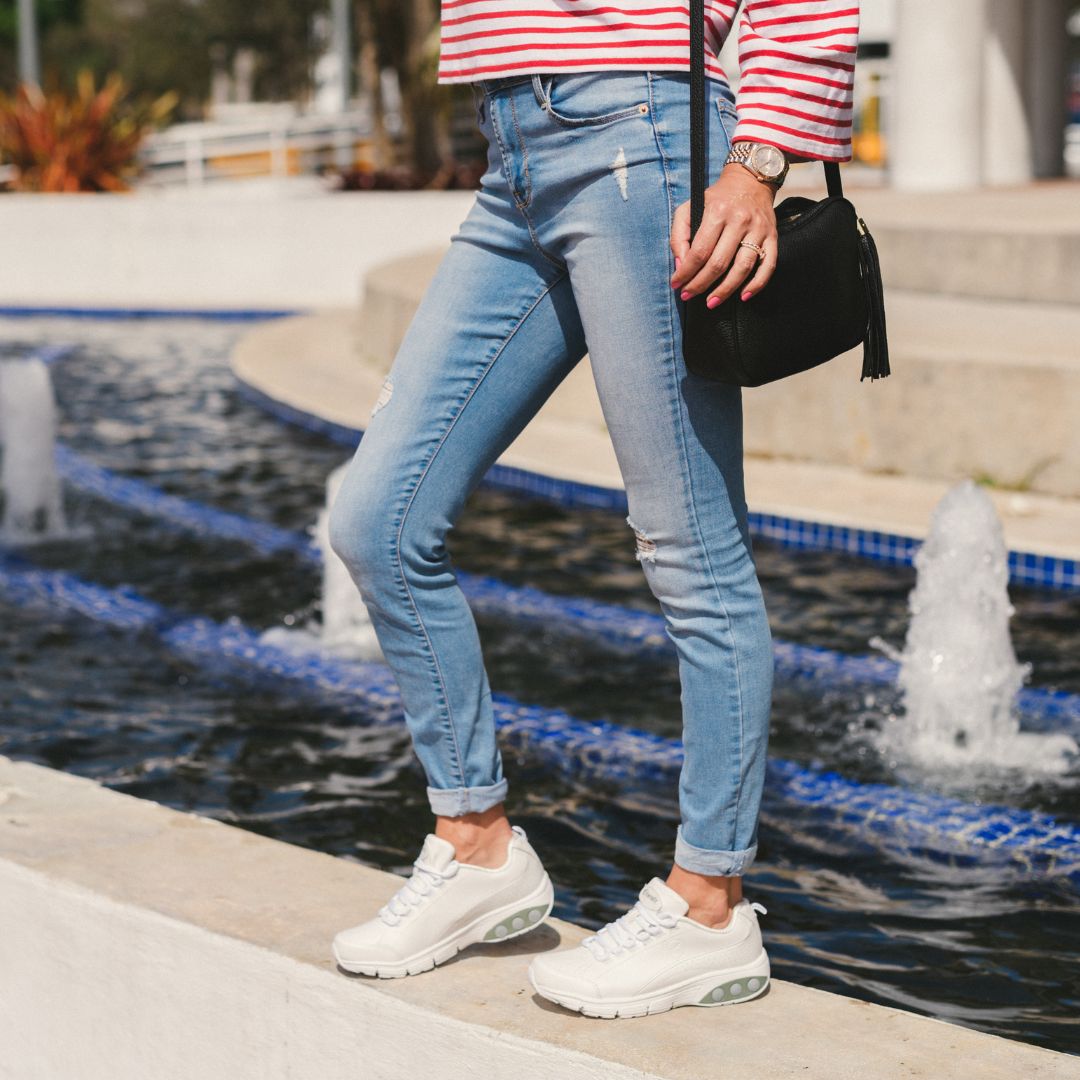 This is my second Danielle Casual shoes. I have a pair in pink and beige. These feel like comfy walking shoes that go well with dresses, shorts, jeans and easily can be worn with any business casual outfits.