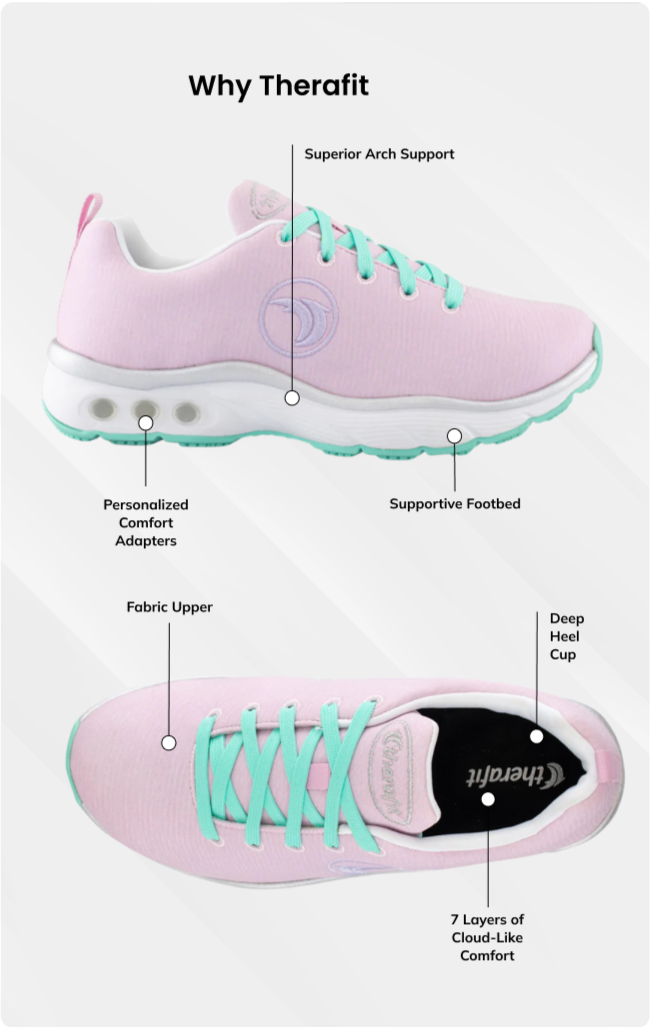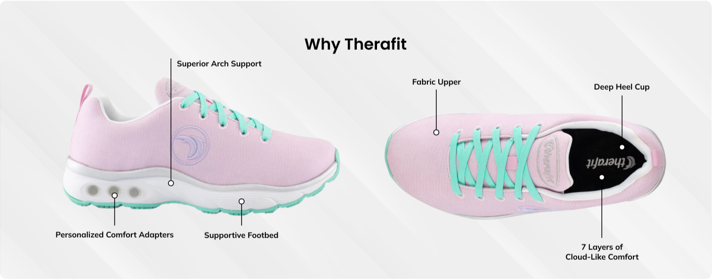 Therafit Footwear Paloma Lite is designed for optimal support and cushioning with the goal of providing you with reliable comfort, protection and relief from arch pain, heel pain, plantar fasciitis, pronation and other foot pain symptoms.
