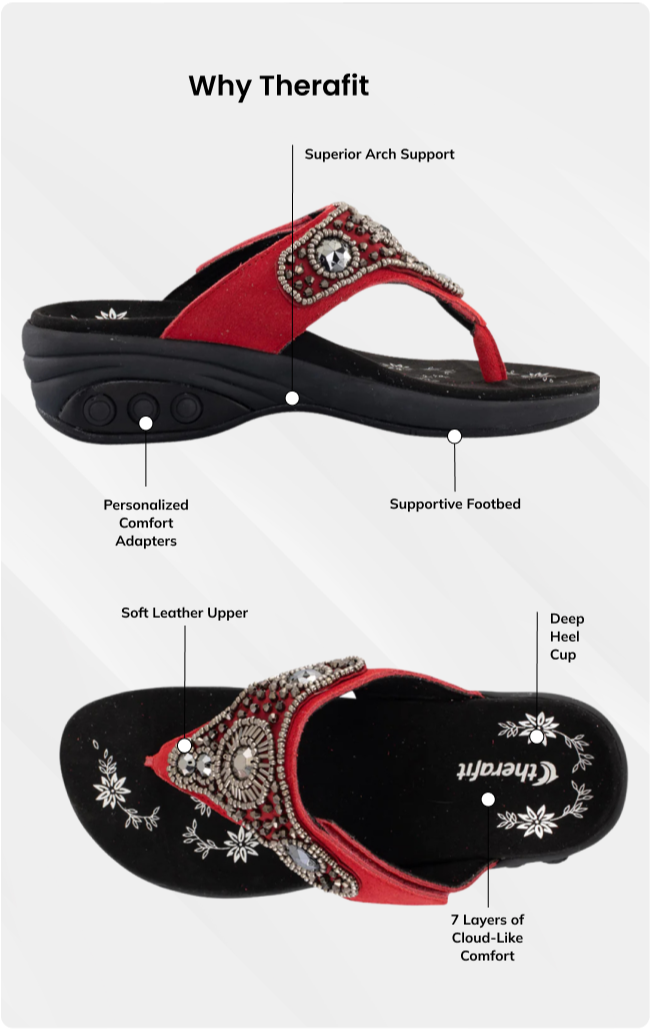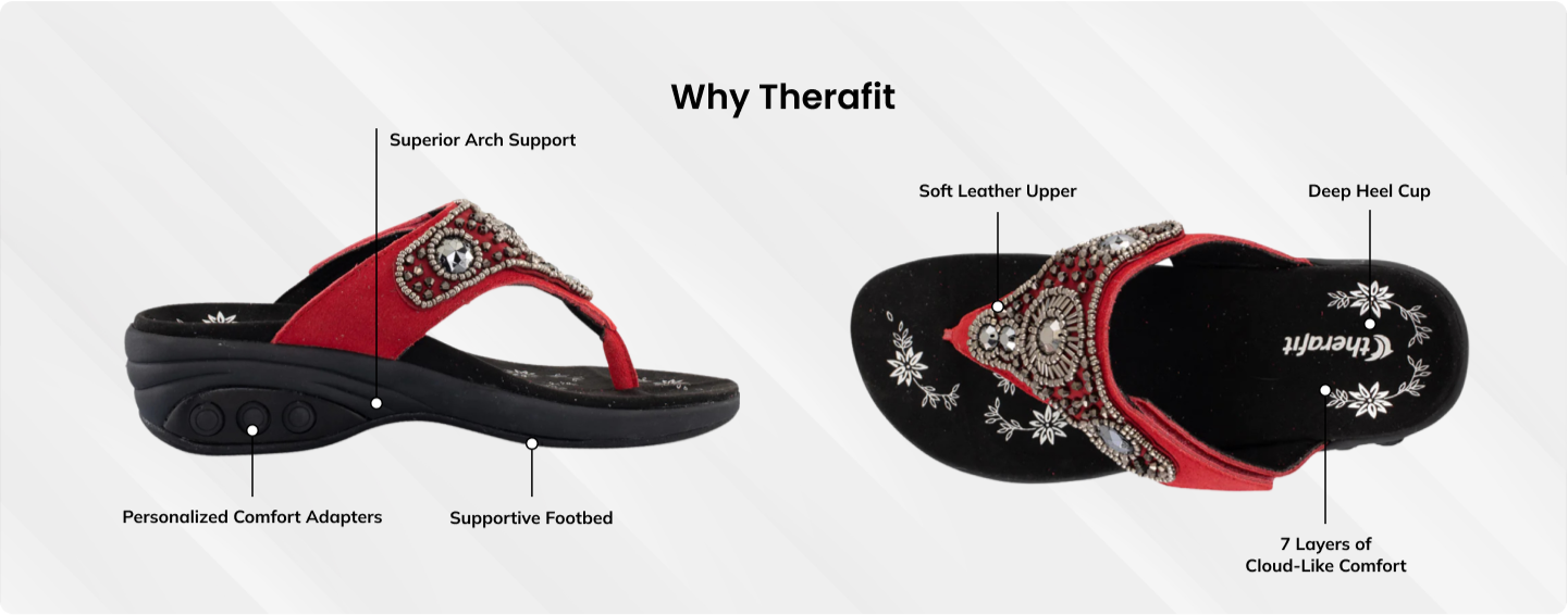 Therafit Footwear products are designed for optimal support and cushioning with the goal of providing you with reliable comfort, protection and relief from arch pain, heel pain, plantar fasciitis, pronation and other foot pain symptoms. Available in whole sizes only. For half sizes please order one size up.